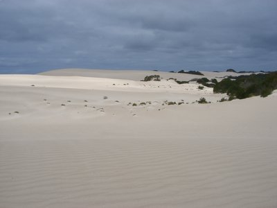 Etwas weiter auf dem Weg war dann noch Little Sahare zu bestaunen. Eine grössere Sanddüne, welche sich ins Land hinein erstreckt. Ich kämpfte mich dem Wind entgegen, der hatte nämlich immer noch nicht abgenommen, über den rutschigen Sand über die ersten paar Dünen, bis ich mitten in der 'Sahara' stand. Es hat sich gelohnt, den Weg auf sich zu nehmen, auch wenn ich ihn alleine gehen musste, Christine war nicht zu überzeugen, sich eventuell eine Ladung Sand in die Schuhe zu schaufeln. Der Parkplatz war übersäht mit kleinen weissen Sandhäufchen von anderen Touristen