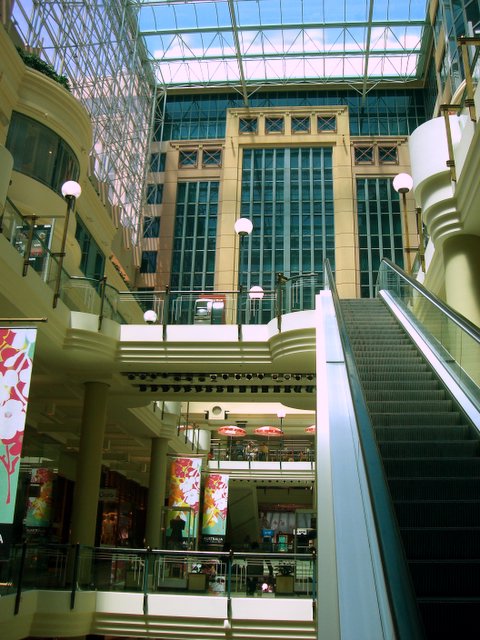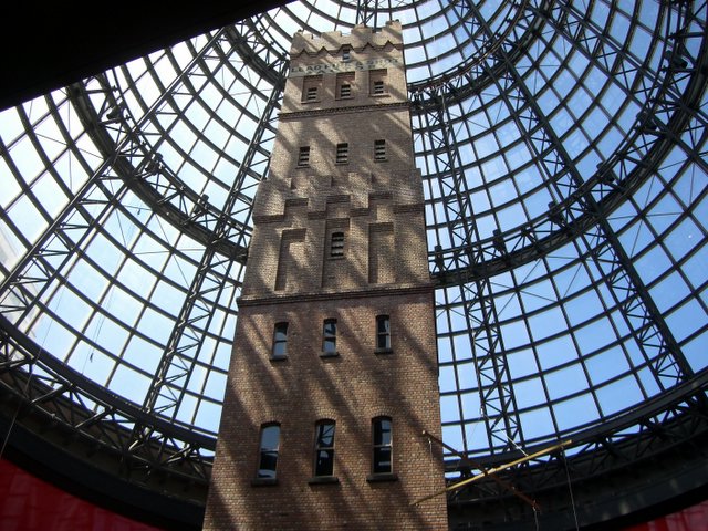 Hei de när z Fuess d City erkundiget. Äs het da verschiedeni Ichoufszänter, wo grad über mehreri Strasse gö. Si si de aube mit ärä Brügg verbunge. Im einte Ichoufszäntrum het äs dinne sogar no äs auts Huus gha. Sehr wahrschinlech isch das z schön gsi für zum abrisse, oder äs isch z tür worde. Jedefaus het me de dr Turm wo däm Hus, ungerere Glaskupple "verstout".